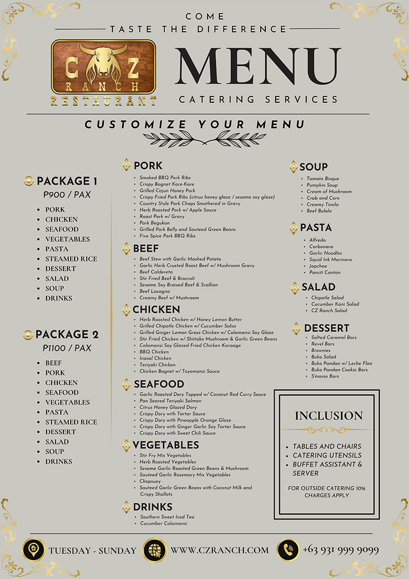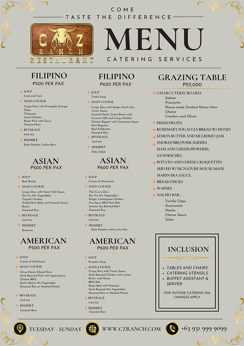 CZ Ranch Restaurant is now open for a grazing table to add spice in your special occasions Reserve now!